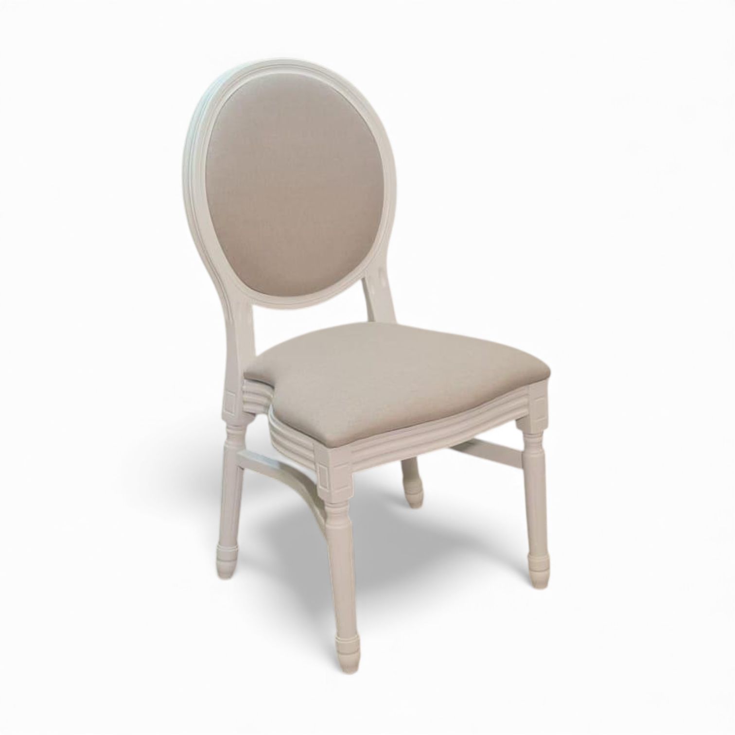 כיסא עץ לבן ריפוד פשתן